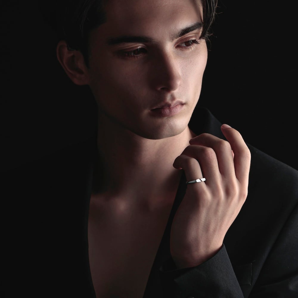 フレームに開口部を設けた316Lステンレス製リング。光を通す独創的なデザインが、手元に都会的な抜け感をプラス。洗練されたラインと上質な表面仕上げが、日常に特別感を添えます。